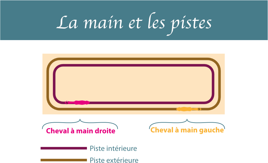 En fonction du sens dans lequel vous parcourez ces pistes, on adoptera un vocabulaire différent : être à «main droite» ou être à «main gauche». La dénomination main droite/main gauche dépend de la main qui est du côté du centre du terrain.