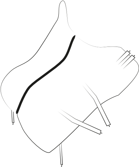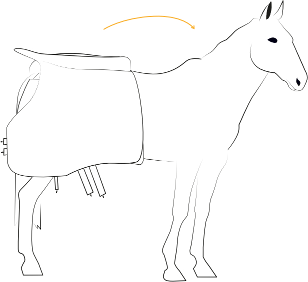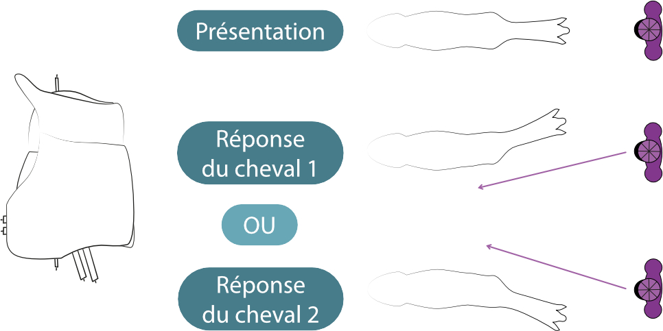 Attacher les 3 paires d'attaches. Penser à passer de l'autre côté du cheval pour boucler la seconde attache de cuisse.