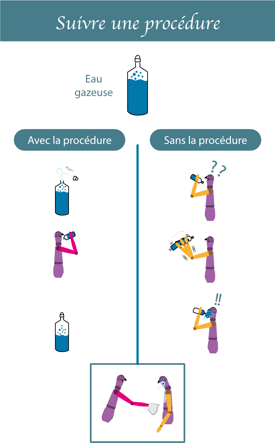 Vous ouvrez toujours votre gourde avant de boire dedans et vous la refermer toujours avant de la ranger dans votre sac. Et bien pour un cheval, c’est pareil, vous suivrez toujours les mêmes processus de demande. Même si votre cheval ne répond qu’à moitié, il faut lui laisser le temps de la répétition pour comprendre l’enchainement des aides avant qu’il puisse y répondre. Cela peut pendre plusieurs heures de cours.