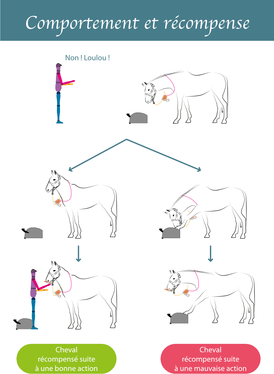 La récompense est souvent mal comprise par les cavaliers. Pourtant le principe est simple. Le cheval associe les événements qui se touchent dans le temps.